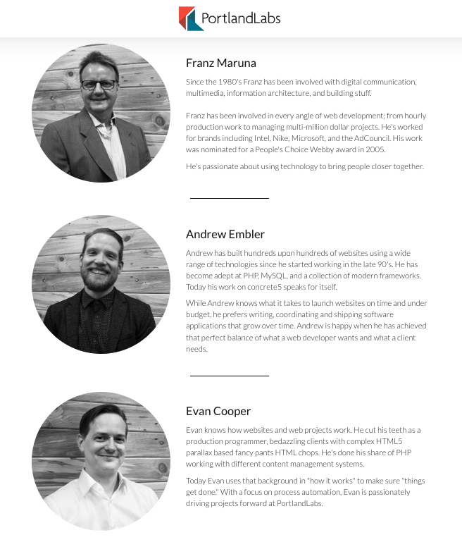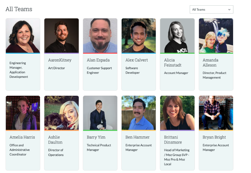 A couple of examples of team pages: