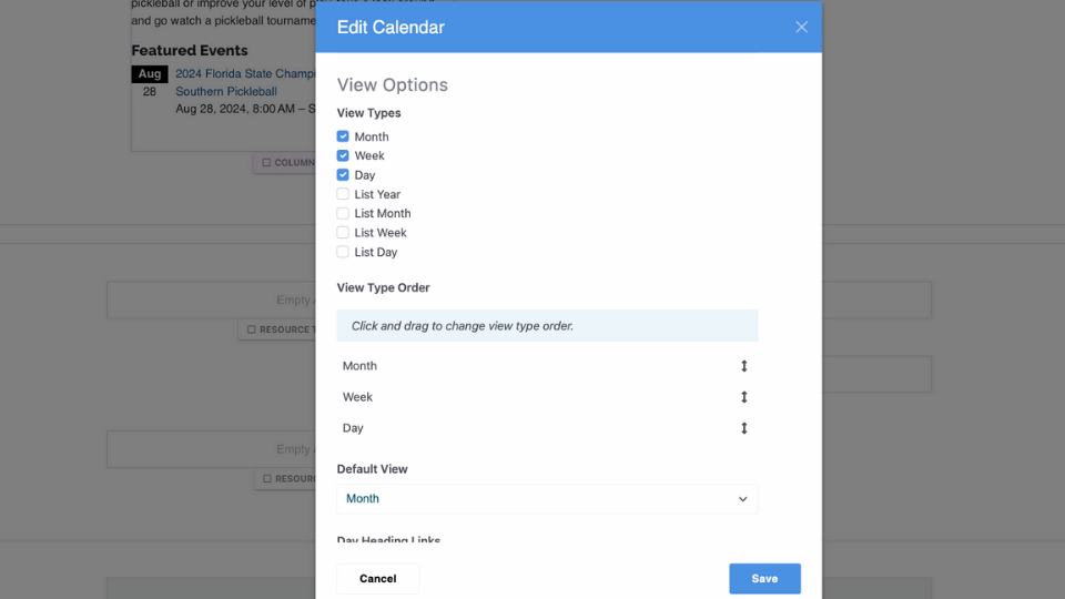 - Mini-Calendar: A compact view option for displaying events by month, week, or day.