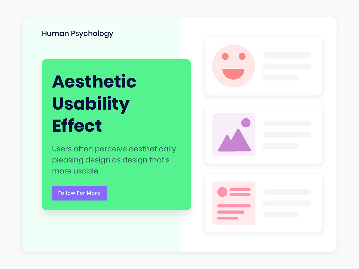 The aesthetic-usability effect is based on the idea that users believe that things work better when they look better. When the design is aesthetically pleasing, users are more willing to overlook minor problems when interacting with your website.