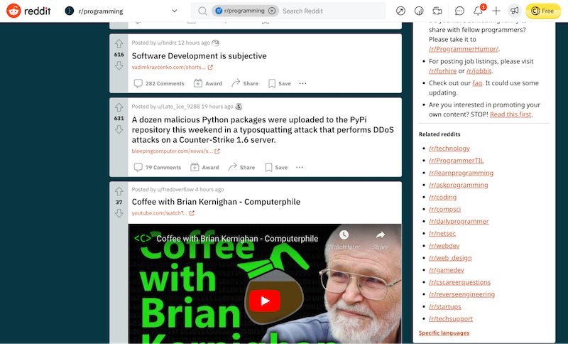 Let's take a look at the top developer websites for instance: